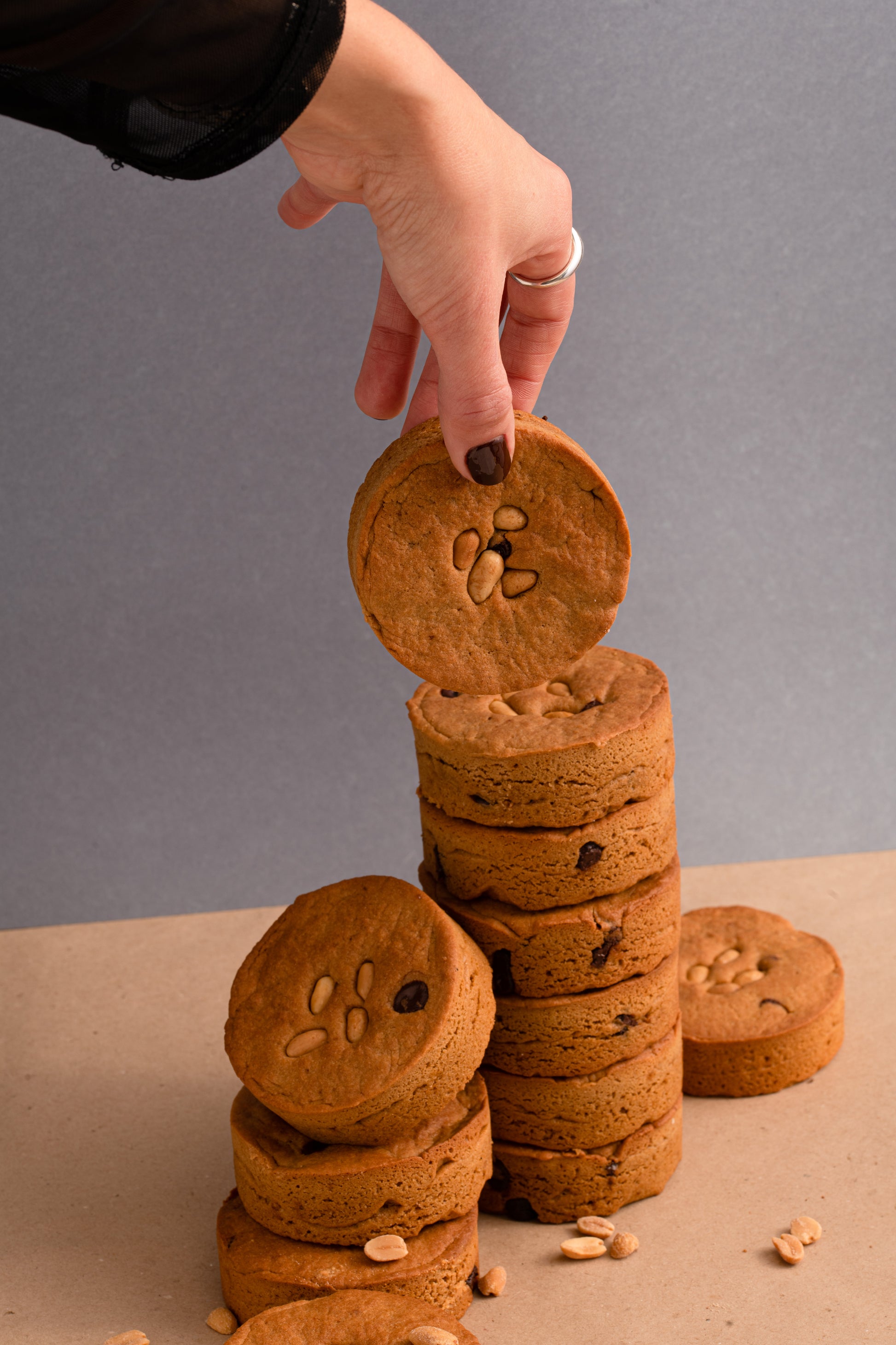 Švelniai saldūs, su žemės riešutų sviesto įdaru ir juodo šokolado gabalėliais.